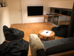 This holiday home offers a fireplace. Meals can be prepared in the kitchen, which comes with a stovetop, a refrigerator, a dishwasher and an oven. Featuring a terrace, this holiday home also provides a washing machine, a private entrance and a flat-screen TV. The unit offers 4 beds.