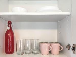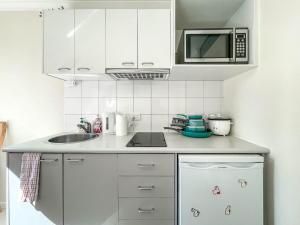 Diese Ferienwohnung mit Klimaanlage ist versehen mit 1 Schlafzimmer, Flachbild-TV und einer Küche mit einem Kühlschrank und einer Mikrowelle