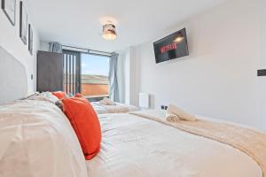 Guests can make meals in the kitchen that features a refrigerator, a dishwasher, an oven and a microwave. The spacious apartment features a washing machine, a sofa, heating and a flat-screen TV with streaming services. The unit is furnished with 4 beds.