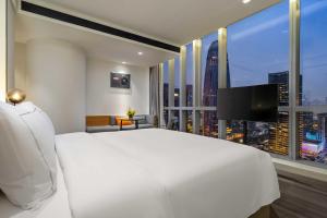 The spacious air-conditioned double room offers a flat-screen TV, soundproof walls, a minibar, a coffee machine as well as city views. The unit offers 1 bed.
