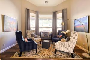 This holiday home's standout feature is the private pool. Boasting a private entrance, this spacious holiday home also includes 4 bedrooms, a seating area and 3 bathrooms with a walk-in shower and a bath. Guests will find a stovetop, a refrigerator, a dishwasher and kitchenware in the kitchen. The holiday home also features a barbecue. The air-conditioned holiday home offers a flat-screen TV with streaming services, a washing machine, a tea and coffee maker, a dining area as well as garden views. V této ubytovací jednotce se nachází 6 postelí.