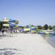 Vakantiepark Klein Strand - Glamping 4p, que tiene vistas a la piscina, dispone de alojamiento con terraza y cafetera, y está a unos 11 km de Parque marino Boudewijn Seapark. El alojamiento ofrece vistas al lago y al jardín y está a 12 km de Estación de tren de Brujas.