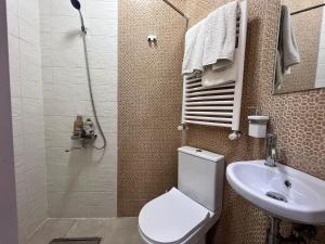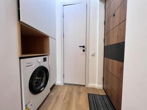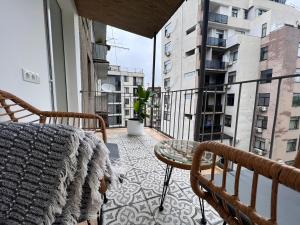 The kitchen features a stovetop, a refrigerator and kitchenware. This apartment is air-conditioned and has a washing machine, a tea and coffee maker as well as a balcony with city views. The unit has 1 bed.