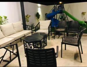 This chalet features a pool with a view. This spacious chalet is comprised of 2 bedrooms, kitchen, a terrace and 3 bathrooms with a shower. The chalet's kitchen is available for cooking and storing food. Featuring a balcony with pool views, this chalet also offers air conditioning and a flat-screen TV with satellite channels. The unit offers 3 beds.