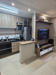 Klimatizovaný apartmán v Varanda Castanheira - Apartamento para COP30 disponuje 2 ložnicemi, plně vybavenou kuchyní a balkonem. Vybavení ubytování zahrnuje TV s plochou obrazovkou.