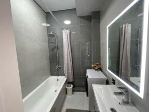 This spacious apartment is comprised of 1 living room, 1 separate bedroom and 2 bathrooms with a bath and free toiletries. The well-equipped kitchen features a stovetop, a refrigerator, a dishwasher and kitchenware. The air-conditioned apartment offers a flat-screen TV, a washing machine, soundproof walls, a tea and coffee maker as well as garden views. The unit provides 2 beds.