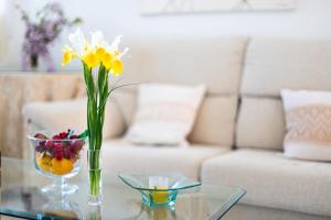 This spacious apartment is comprised of 2 bedrooms, a kitchen and 1 bathroom with a shower and a hairdryer. The fully equipped kitchen features a stovetop, a refrigerator, a dishwasher and kitchenware. Among the room amenities are air conditioning, a washing machine, a coffee machine as well as a patio and sea views. The unit provides 4 beds.