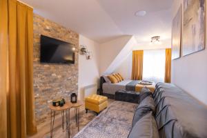 This apartment is comprised of 1 living room, 1 separate bedroom and 1 bathroom with a walk-in shower and free toiletries. Guests can make meals in the kitchen that is fitted with a stovetop, a refrigerator, kitchenware and an oven. The apartment offers soundproof walls, a tea and coffee maker, a seating area, a TV with cable channels, as well as mountain views. The unit offers 2 beds.
