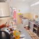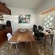 Cette maison de vacances avec climatisation comporte 1 chambre, une télévision à écran plat, un coin repas, ainsi qu’une cuisine avec un réfrigérateur et un four.
