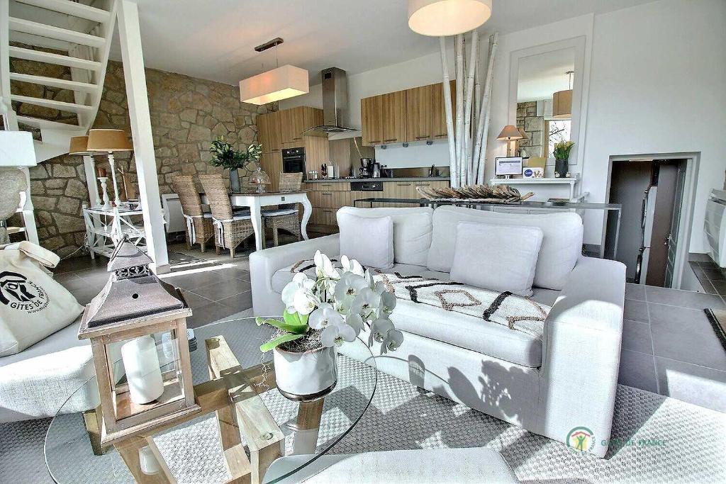 The fireplace is the standout feature of this holiday home. Boasting 2 bedrooms, this holiday home has 2 bathrooms with a hairdryer, a seating area and terrace where you can relax. Guests will find a refrigerator, a dishwasher, kitchenware and an oven in the kitchen. The holiday home also features a barbecue. The holiday home offers a washing machine, a private entrance, a coffee machine, a dining area, as well as a flat-screen TV. The unit offers 3 beds.