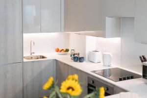 Pokoje: 1This spacious apartment includes 1 living room, 1 separate bedroom and 1 bathroom with a shower and a hairdryer. The well-fitted kitchen has a stovetop, a refrigerator, a dishwasher and kitchenware. Boasting a balcony with city views, this apartment also offers a washing machine and a TV. V této ubytovací jednotce se nachází 2 postele.