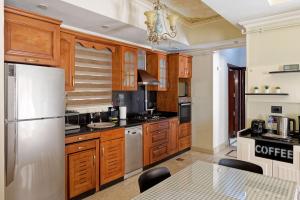 The apartment's kitchen, which features kitchenware, is available for cooking and storing food. The spacious apartment provides air conditioning, a washing machine, heating, as well as a terrace.