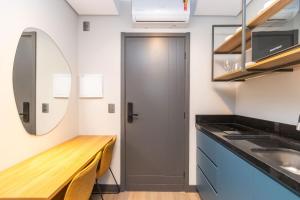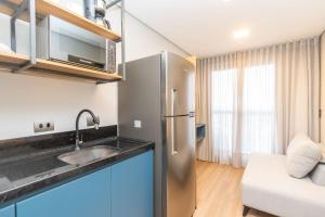 The fully equipped kitchen features a stovetop, a refrigerator, kitchenware and a microwave. A seating area with a flat-screen TV, a desk, a balcony and a private bathroom are provided in this apartment. The unit offers 1 bed.