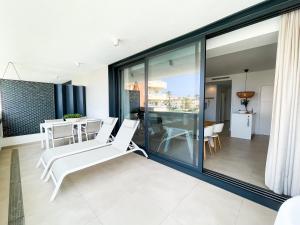 Questo appartamento dispone di 2 camere da letto, 2 bagni, lenzuola, asciugamani, una TV, una cucina con utensili e un patio con la vista sul mare.