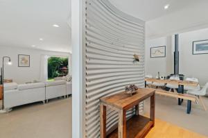 The spacious holiday home has 2 bedrooms, a TV, a fully equipped kitchen with a dishwasher and an oven, a washing machine, and 1 bathroom with a bath. Towels and bed linen are offered in the holiday home at Views on Koru. The accommodation offers a fireplace.