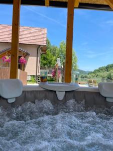 This holiday home's special features are the pool with a view and the fireplace. Featuring a private entrance, this air-conditioned holiday home comprises 1 living room, 1 separate bedroom and 1 bathroom with a shower and a hairdryer. Guests will find a stovetop, a refrigerator, kitchenware and an oven in the kitchen. The holiday home also provides guests with a barbecue. Boasting a terrace with lake views, this holiday home also provides soundproof walls and a flat-screen TV with cable channels. The unit offers 4 beds.