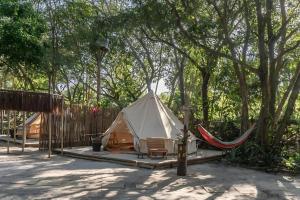 Guests will find a stovetop, a refrigerator, kitchenware and an oven in the fully equipped kitchen. The tent also includes a barbecue. The tent features a washing machine, a private entrance, a balcony with garden views as well as a shared bathroom boasting a shower. The unit is equipped with 1 bed.