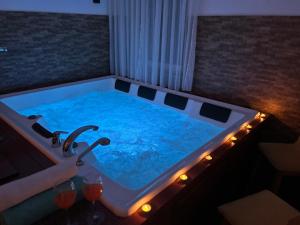 This villa's standout features are the hot tub, spa bath and fireplace. Boasting a private entrance, this air-conditioned villa features 1 living room, 2 separate bedrooms and 1 bathroom with a walk-in shower and a hairdryer. Guests will find a stovetop, a refrigerator, kitchenware and an oven in the well-fitted kitchen. The villa also comes with a barbecue. Featuring a terrace with garden views, this villa also features a seating area and a flat-screen TV with satellite channels. The unit has 4 beds.