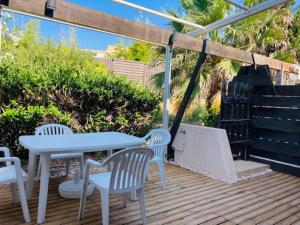 Con un accesso diretto a una terrazza, questo appartamento con aria condizionata comprende 1 camera da letto e una cucina con utensili. Presso Villa 181, Port Nature, au village naturiste è disponibile una TV a schermo piatto.