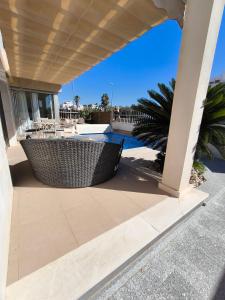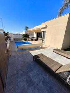 Featuring a private entrance, this air-conditioned holiday home consists of a kitchen, 3 bedrooms and 2 bathrooms with a shower and a hairdryer. Guests can make meals in the kitchen that is equipped with a refrigerator, a dishwasher, kitchenware and an oven. The holiday home features a washing machine, a tea and coffee maker, a dining area as well as a terrace with pool views. The unit offers 4 beds.
