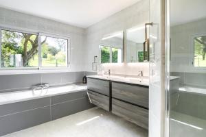 This villa's standout features are the private pool and fireplace. This spacious villa consists of 1 living room, 4 separate bedrooms and 4 bathrooms with a bath and a shower. Guests will find a stovetop, a dishwasher, kitchenware and an oven in the well-fitted kitchen. The villa also offers a barbecue. Featuring a terrace with sea views, this villa also provides a washing machine and a flat-screen TV. The unit offers 4 beds.