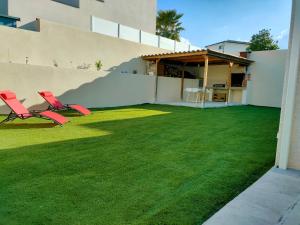 Featuring a private entrance, this air-conditioned holiday home comprises a kitchen, 3 bedrooms and 1 bathroom with a shower and a hairdryer. Guests will find a stovetop, a refrigerator, a dishwasher and kitchenware in the kitchen. The holiday home also provides guests with a barbecue. Boasting a terrace with garden views, this holiday home also provides a washing machine and a flat-screen TV. The unit offers 4 beds.