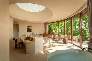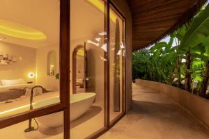 This holiday home's standout feature is the hot tub. The air-conditioned holiday home features 1 bedroom and 1 bathroom with a bath and a shower. The holiday home has soundproof walls, a tea and coffee maker, a sofa as well as a terrace with garden views. The unit provides 2 beds.