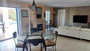 This villa features a private pool, a fitness centre, a sauna, and a fireplace. Boasting a private entrance, this air-conditioned villa features 1 living room, 2 separate bedrooms, and 1 bathroom with a shower and a bidet. Guests will find a stovetop, a refrigerator, a dishwasher, and kitchenware in the kitchen. The villa also comes with a barbecue. Featuring a terrace with pool and garden views, this villa also features a washing machine and a flat-screen TV with streaming services. The unit has two beds.