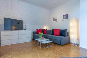 This spacious apartment comprises 1 living room, 1 separate bedroom and 1 bathroom with a shower and a hairdryer. Guests can make meals in the kitchen that is equipped with a stovetop, a refrigerator, a dishwasher and kitchenware. Featuring a balcony with garden views, this apartment also provides a washing machine and a TV with cable channels. The unit provides 2 beds.