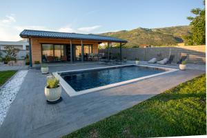 This holiday home provides a private pool. Featuring a private entrance, this air-conditioned holiday home is comprised of 1 living room, 2 separate bedrooms and 1 bathroom with a shower and a hairdryer. The well-fitted kitchen features a stovetop, a refrigerator, a dishwasher and kitchenware. The holiday home offers a flat-screen TV with cable channels, a washing machine, a tea and coffee maker, a seating area as well as garden views. The unit offers 4 beds.