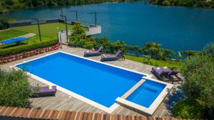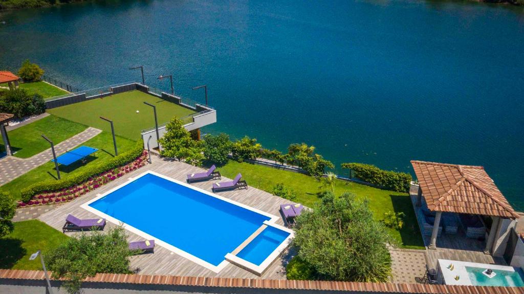 Guests will have a special experience as this villa offers a pool with a view, a hot tub and a fireplace. Featuring a private entrance, this air-conditioned villa consists of 1 living room, 2 separate bedrooms and 2 bathrooms with a walk-in shower and a hairdryer. Guests will find a stovetop, a refrigerator, a dishwasher and kitchenware in the kitchen. The villa also offers a barbecue. Boasting a terrace with lake views, this villa also provides a washing machine and a flat-screen TV with cable channels. The unit offers 4 beds.