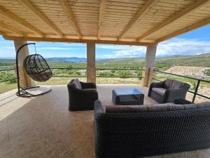 Guests will have a special experience as this holiday home features a pool with a view. Featuring a private entrance, this air-conditioned holiday home is comprised of 1 living room, 1 separate bedroom and 1 bathroom with a shower and a hairdryer. Guests will find a stovetop, a refrigerator, kitchenware and a toaster in the fully equipped kitchen. The holiday home also has a barbecue. Boasting a terrace with sea views, this holiday home also offers a tea and coffee maker and a flat-screen TV. The unit provides 2 beds.