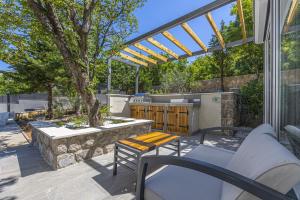 The private pool and hot tub are the special features of this villa. This air-conditioned villa is comprised of 1 living room, 3 separate bedrooms and 2 bathrooms with a shower. Guests will find a stovetop, a refrigerator, a dishwasher and kitchenware in the well-fitted kitchen. The villa also has a barbecue. Featuring a terrace with sea views, this villa also offers a washing machine and a flat-screen TV. The unit offers 5 beds.