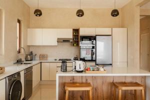 This villa features a pool with a view. Featuring a private entrance, this spacious villa also is comprised of 1 living room, 4 separate bedrooms and 5 bathrooms with a walk-in shower. Guests will find a stovetop, a refrigerator, a dishwasher and kitchenware in the kitchen. The villa also has a barbecue. Boasting a terrace with sea views, this villa also offers a washing machine and a flat-screen TV with streaming services. The unit offers 5 beds.