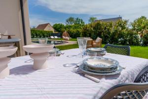 The villa is located on the ground floor and features 1 bedroom, a flat-screen TV with streaming services and a fully equipped kitchen that provides guests with a dishwasher, an oven, a washing machine, a toaster and a fridge. The unit at the property features a bath and a dressing room. Villa chic à 5 minutes de Deauville includes an outdoor dining area.