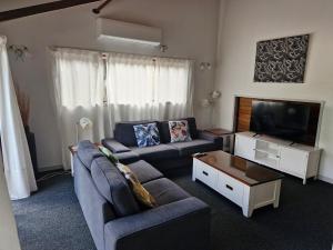 In the well-equipped kitchen, guests will find a stovetop, a refrigerator, a dishwasher and kitchenware. This air-conditioned villa is comprised of a flat-screen TV with streaming services, a shared bathroom as well as a balcony with garden views. The unit has 3 beds.