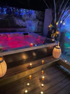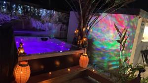 This villa's special features are the private pool and the hot tub. Meals can be prepared in the well-fitted kitchen, which features a stovetop, a refrigerator, a dishwasher and an oven. The air-conditioned villa features a flat-screen TV, a washing machine, a private entrance, a tea and coffee maker as well as garden views. The unit has 2 beds.