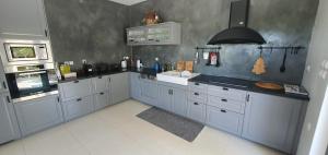 Featuring a private entrance, this air-conditioned villa consists of 1 living room, 3 separate bedrooms and 3 bathrooms with a walk-in shower and a bath. The fully equipped kitchen features a stovetop, a refrigerator, a dishwasher and kitchenware. The spacious villa provides a washing machine, soundproof walls, a tea and coffee maker as well as a terrace with sea views. The unit offers 6 beds.