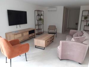 The private pool is the standout feature of this apartment. Boasting a private entrance, this spacious apartment also comes with 2 bedrooms, a seating area and 2 bathrooms with a walk-in shower and a hairdryer. Guests will find a stovetop, a refrigerator, a dishwasher and kitchenware in the kitchen. The apartment also includes a barbecue. The air-conditioned apartment features a flat-screen TV, soundproof walls, a tea and coffee maker, a dining area as well as garden views. The unit has 2 beds.