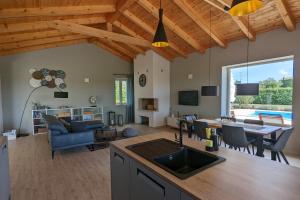 This villa's special features are the private pool and the fireplace. Boasting a private entrance, this air-conditioned villa includes 1 living room, 3 separate bedrooms and 3 bathrooms with a walk-in shower and a bidet. Guests will find a stovetop, a refrigerator, a dishwasher and kitchenware in the kitchen. The villa also features a barbecue. Featuring a terrace with garden views, this villa also offers a washing machine and a flat-screen TV with satellite channels. The unit has 3 beds.