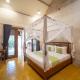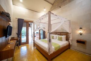 Willa Villa Gema Asri - Boho Chic Oasis in Central Petitenget posiada 1 sypialnię, klimatyzację oraz telewizor z płaskim ekranem. Willa zapewnia Gościom ręczniki i pościel.