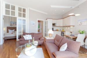 Apartmán v ubytování zahrnuje 1 ložnici, obývací pokoj, 1 koupelnu a plně vybavený kuchyňský kout s lednicí a myčkou. V koupelně ubytování Villa Gruner Nr 04 nechybí sprcha ani fén. V ubytování Villa Gruner Nr 04 jsou pro hosty připraveny ručníky a ložní prádlo.