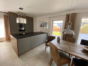 Prázdninový dům v Villa Gudrun, luxury Beach House má 4 ložnice, 2 koupelny, plně vybavenou kuchyň s jídelním koutem a lednicí a obývací prostor s TV. V koupelně ubytování ubytování nechybí sprcha ani fén.