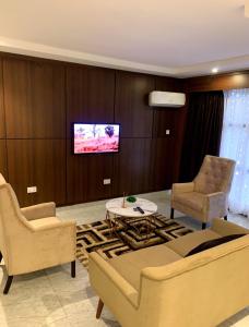 Situated in Abuja and with IBB Golf Club reachable within 6.1 km, Villa Hotel Asokoro, close to ECOWAS, and Force Hq features concierge services, non-smoking rooms, an outdoor swimming pool, free WiFi throughout the property and a bar. Each accommodation at the 5-star hotel has city views, and guests can enjoy access to a sun terrace and to a sauna. Villa Hotel Asokoro, close to ECOWAS, and Force Hq features room service, a 24-hour front desk, and currency exchange.