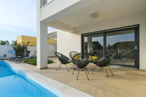 This villa features a pool with a view. Boasting a private entrance, this air-conditioned villa features 1 living room, 3 separate bedrooms and 3 bathrooms with a walk-in shower and a hairdryer. Guests will find a stovetop, a refrigerator, a dishwasher and kitchenware in the well-fitted kitchen. The villa also comes with a barbecue. Featuring a terrace with sea views, this villa also features a washing machine and a flat-screen TV with streaming services. The unit has 4 beds.