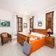 Questa villa con aria condizionata comprende 5 camere da letto, un soggiorno, una cucina con utensili più frigorifero, e 5 bagni con doccia e asciugacapelli. Presso Villa Irene Palace avrete a disposizione lenzuola e asciugamani.