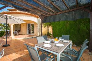 Villa La Martina offers an outdoor pool, sun loungers, covered outdoor dining area and barbecue facilities. The bright villa has a spacious living-dining area with satellite TV. Some rooms are air conditioned. Its kitchen is equipped with an oven, microwave and ceramic hob. There is also a separate room with a washing machine. There are 2 double bedrooms, 1 with an en suite bathroom, as well as 1 twin room and an additional bathroom. There is also an outdoor shower by the pool.