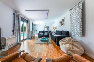 Featuring a private entrance, this spacious holiday home also comprises 3 separate bedrooms and 2 bathrooms with a shower and a hairdryer. Meals can be prepared in the well-fitted kitchen, which comes with a stovetop, a refrigerator, a dishwasher and kitchenware. The air-conditioned holiday home provides a TV with satellite channels, a washing machine, a coffee machine, a barbecue as well as garden views. V této ubytovací jednotce je k dispozici 3 postele.