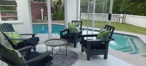 Guests at the property can enjoy the outdoor swimming pool and garden.