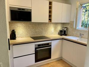 This holiday home features a pool with a view. Boasting a private entrance, this air-conditioned holiday home features 1 living room, 2 separate bedrooms and 2 bathrooms with a bath and a shower. Guests will find a stovetop, a refrigerator, a dishwasher and kitchenware in the kitchen. The holiday home also comes with a barbecue. Featuring a terrace with sea views, this holiday home also features a washing machine and a flat-screen TV with streaming services. The unit has 4 beds.